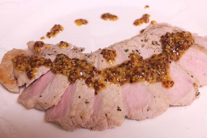 まずは「豚ロースのソテー ハニーマスタードソース」から。設定温度60℃で加熱時間50分でしたが、豚肉が薄いピンク色の絶妙な火の通り具合。しっとりした歯ごたえで、パサつきがなく、豚肉のうまみが凝縮された印象でした。