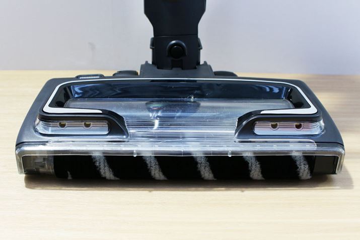 ヘッド前面が開いていることにより、ヘッドでゴミが押されて吸引できないという状況を低減。実際に、試してみたところ、ゴミが押し出されることなく吸い込まれることが確認できました(下の動画参照)