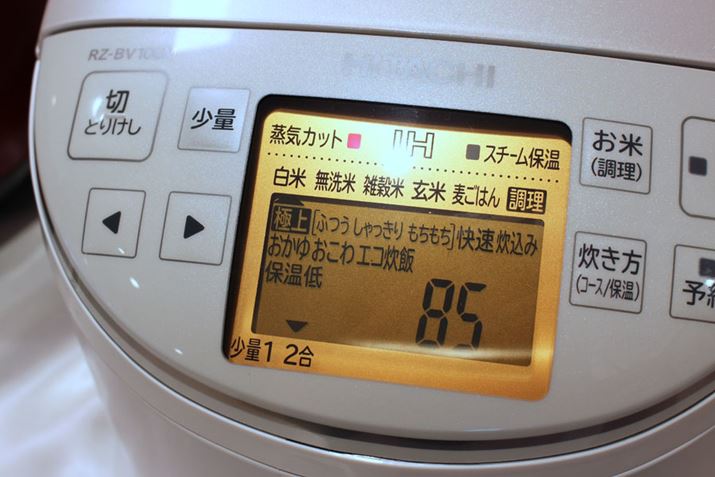 このセミナーではエントリーモデル「RZ-BV100M」(5.5合)の「少量炊き」コースで炊いたごはんを試食しましたが、「ふっくら御膳」シリーズの最上位モデル「RZ-AW3000M」でも同様の炊飯が行えます。最大保温時間や玄米の炊き分けメニューの数、液晶のバックライトの有無といった細かい仕様は異なりますが、RZ-BV100MとRZ-AW3000Mに搭載されている白米の炊飯コースや白米の食感炊き分けの種類は同じ。メーカー希望小売価格で4万円の差があるので、白米中心ならエントリーモデルを選んでもいいかもしれません。