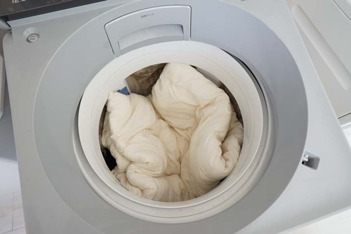 ドラム式洗濯機のような「たたき洗い」の形式だと、弱めのコース設定で洗っても中綿が片寄ってしまうことも多いのですが、縦型の洗濯機はそういった片寄りが起こりにくいのもいいですね。これは、大容量の縦型洗濯機ならではのメリットだと感じました。さすがに大人用の布団は無理かと思いますが、洗える座布団などは十分に洗えるのではないかと思います。