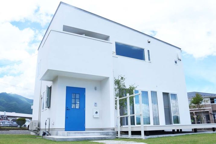 日本アルプスをのぞむ長野県・伊那市の住宅地に建つ「センタクアトリエ」。白と青の“洗濯カラー”が爽やかです