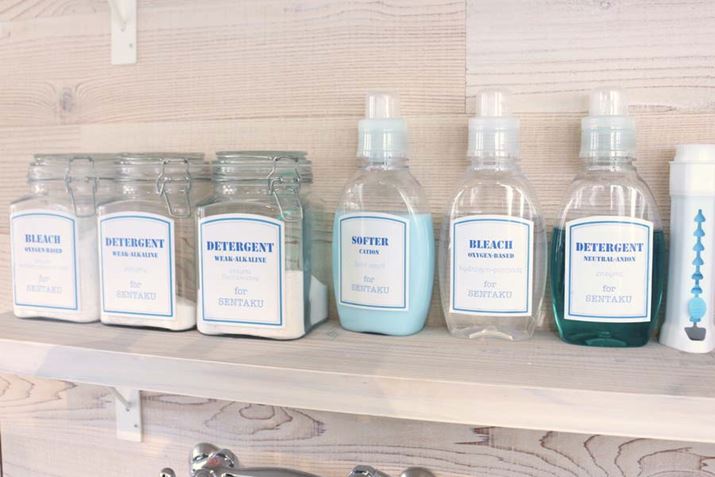 市販の洗剤は、オリジナルラベルを付けたボトルに入れておしゃれに。洗剤の原料がみそ・塩・醤油なら、市販の洗剤は、「○○鍋の素」みたいなもの。ひとつで味が決まるけれど、意図したものと違う材料が入っているものを使っても意味はないのだそう