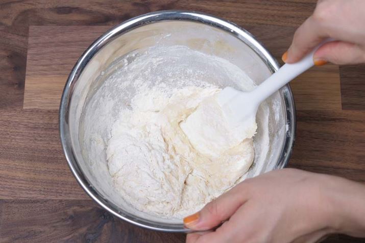 まずはもっとも簡単そうな丸パンを作ってみよう。牛乳・バター・砂糖を混ぜ、ドライイーストを加えたら粉っぽさがなくなるまでゴムべらでよく混ぜる