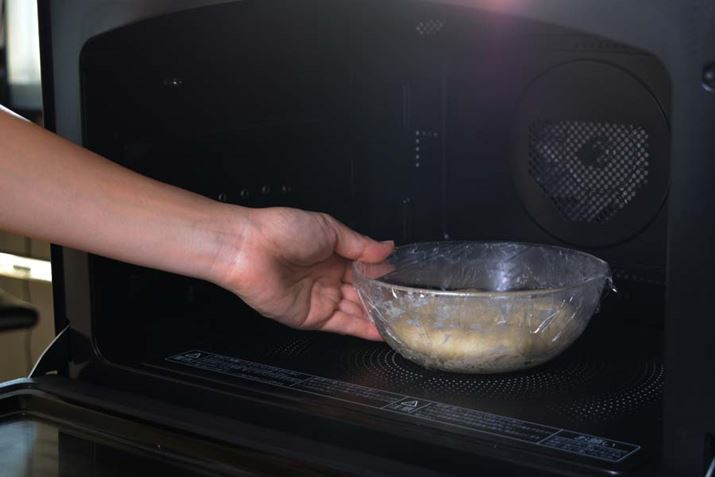 生地を平らにならし、ラップをして庫内中央に置いて、1次発酵をスタート。自動メニューなので温度や時間を設定する必要はない