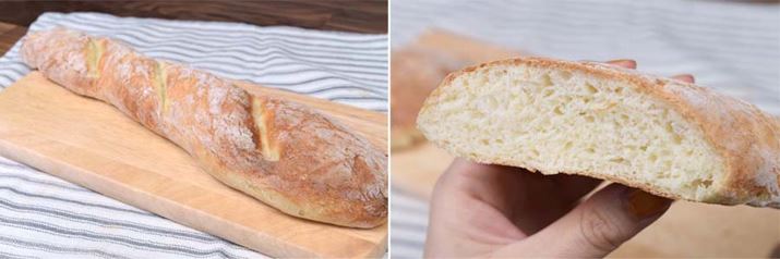 約15分で焼成が終了し、「お手軽フランスパン」の完成。外側は硬く、内側はフワフワの理想的なフランスパンがこれほど簡単に作れてしまうのは率直に驚きだ。カタログには「1時間でフランスパンが作れる」とあったが、なるほど確かに、トータル約55分で仕上げることができた