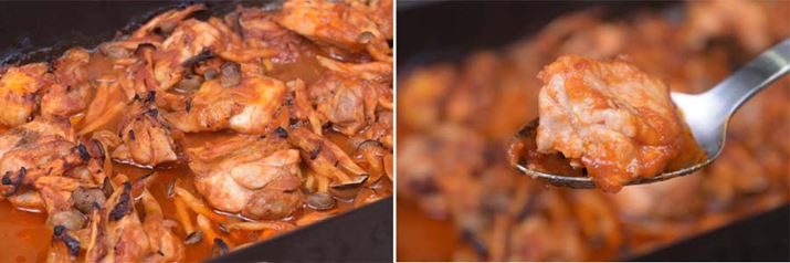 できあがり。約20分という短時間でも味がしっかり染み込んでおり、肉も中までしっかり火が通っている。それでいて肉は硬くなっておらず、口のなかでほろりとほどけていくのがたまらない