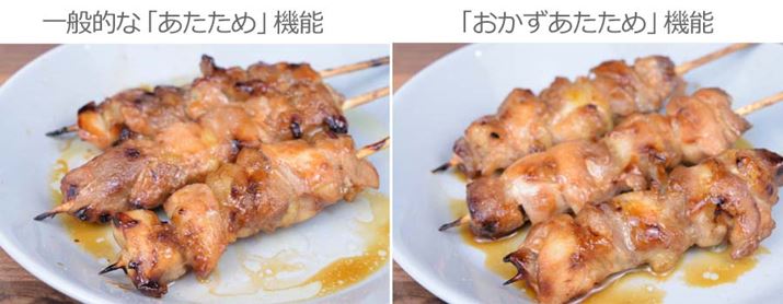 「ER-SD7000」の「おかずあたため」機能と、筆者宅にある単機能レンジの「あたため」機能とでは、仕上がりにどんな違いがでるのか? タレのかかった焼き鳥をあたためて確かめてみることにした