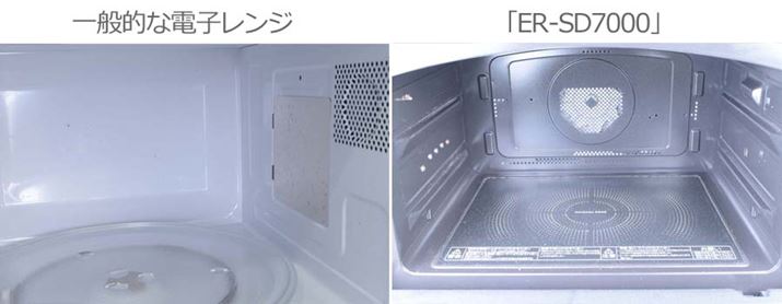 「あたため」後の庫内の汚れ具合はどうだろう? 一般的な電子レンジではタレや肉汁がはじけて側面や天井が汚れてしまっているが、「ER-SD7000」では汚れがほとんど見られない。おいしく仕上がるだけでなく、同時にお手入れの手間も軽減してくれるのは本当にありがたい