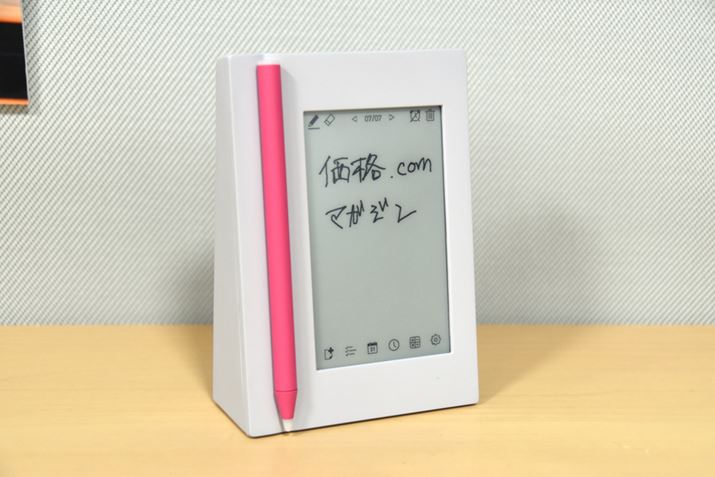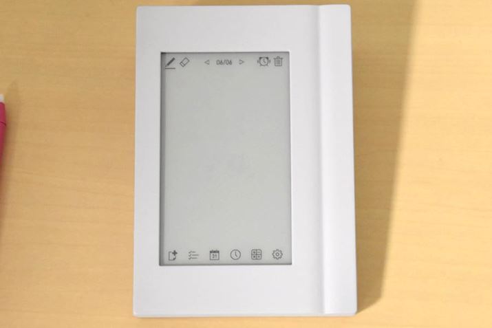 試用には開発サンプルを使ったため、はっきりとしたことは言えないが、本体の上部(画面側)は傾斜しているので画面が見やすく、画面の右横に手を置いて書けるので、筆記も安定していた。専用タッチペンで、メモ、ToDoリスト、カレンダーなどをサクサク切り替えられるのは便利。仕事の作業効率は上がりそうだし、デスクの上にベタベタ貼られた付箋も一掃できるのはうれしい。