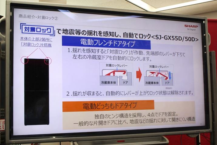 ドアの上部に「対震ロック」を備えることで、大きな地震が起きたときも冷蔵庫の中身をばらまかずに済みます。この安心感は結構うれしい