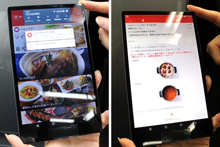 その特徴は、上述の通り、シャープの大ヒット家電であるウォーターオーブン「ヘルシオ」や自動調理鍋「ヘルシオ ホットクック」との連携機能に対応したこと。