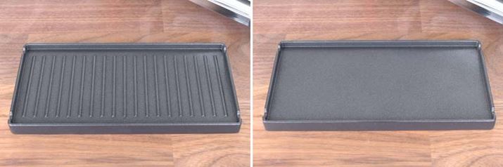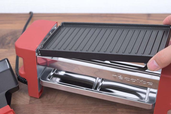 上段に設置するプレートは片面がグリル、もういっぽうの面がフラットの両面仕様。もちろん、プレートは水洗い可能だ