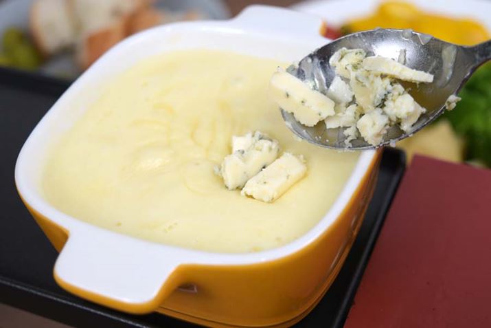 溶かしたチーズに粗く刻んだブルーチーズをプラス。ほんの少しの量でもグッと塩気が増し、お酒が進む味わいになる