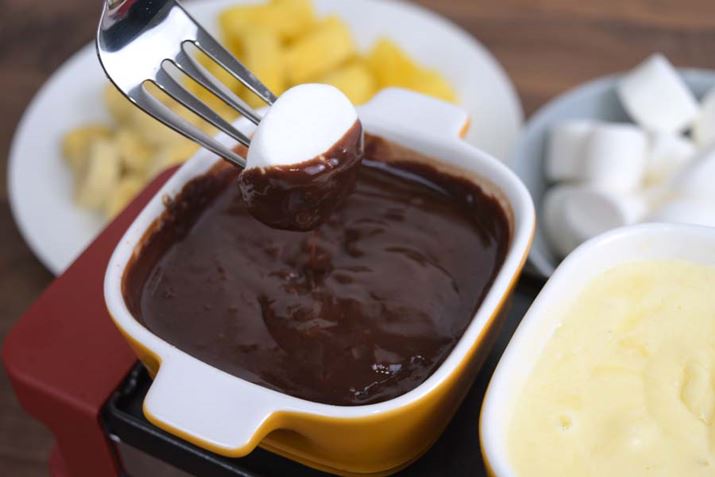 最後はチョコレートフォンデュを試食。パイナップルもマシュマロも、チョコレートをつけるとそれだけでごちそうになるからやめられない