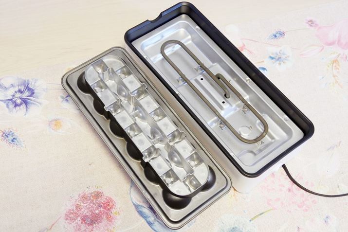 たこ焼きプレートの裏側には電熱線ヒーターがはまる溝が設けられており、これにより全面を均一に熱せられるというわけです