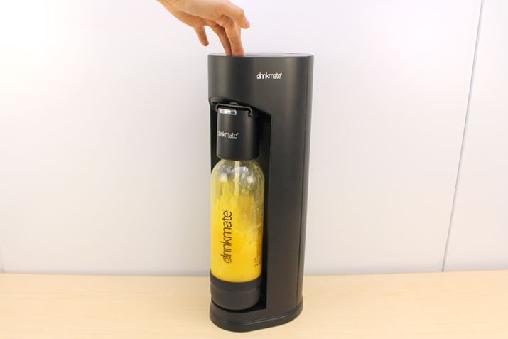 ちなみに、ドリンクメイトは電源がいりません。本体上部の「ガス注入ボタン」を押せば炭酸が注入されるという、完全アナログスタイルです。