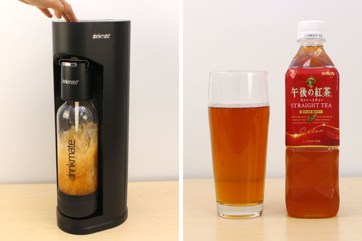 午後の紅茶も炭酸化してみました。正直、上のオレンジジュースには負けましたが、さわやかな飲み口になってこちらもおいしかったです。ストレートよりも、糖分の入った紅茶やレモンティーがあいます。おもてなしドリンクにも