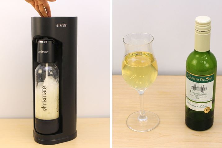 続いて、白ワインを炭酸化。スパークリングワインに近い感じになって、かなりアリ! ワインの種類によって相性もあるかもしれませんが、筆者が試したシャルドネのボトルではガブガブ飲めちゃうできばえでした