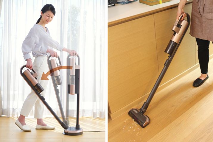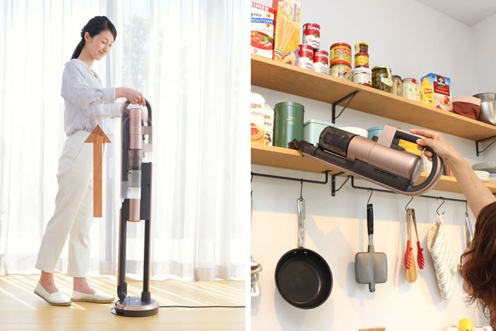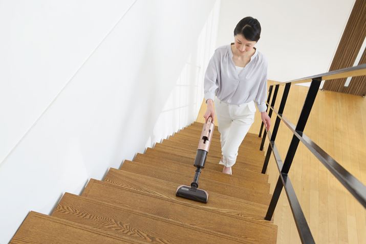 同社従来モデルと比較して、掃除中に手元にかかる重量感が23%減、持ち上げ感が最大49%減に。階段掃除もラクラク