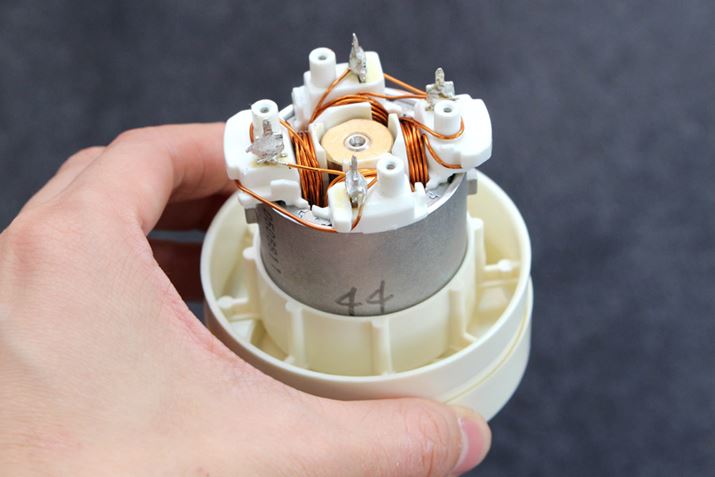 JCモーターの分解イメージ。超高速回転と高効率化を実現し、吸引性能を向上させています