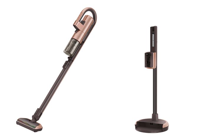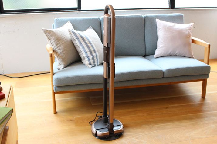 ポイントとなるのは、まずそのデザイン。本体の持ち手が円形状になっていて、充電スタンドに設置するとアルファベットの“Q”を縦長にしたような形になります。これを同社では「Q型スタンドクリーナー」と呼称。リビングなど生活空間に出しっぱなしにして、思いついたときにすぐ掃除ができるよう、スタイリッシュさに配慮した設計です。
