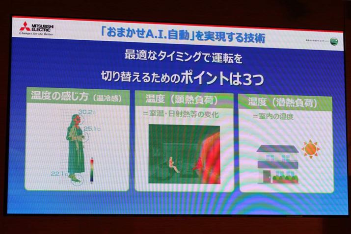 正直、これだけでも高機能ですが、2019年度モデルではさらに「ムーブアイ mirA.I.」が進化して、自動コントロールの精度がより高まりました。ポイントは、「湿度の検知」「運転モードの自動切り替え」の2点です。