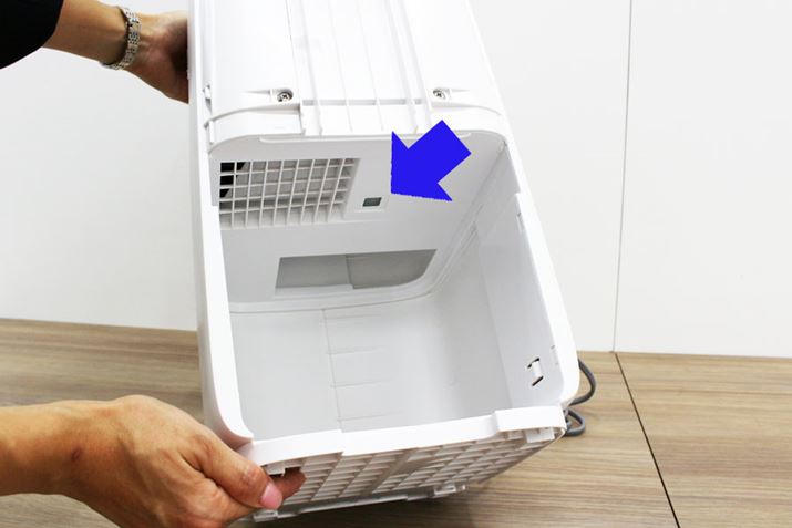 ただ、給水トレーは容量が4Lあるので、水量ゼロの状態から満水まで注いで入れるのは結構大変。そのため、給水トレーにハンドルを装備し、バケツのように水道から直接給水して運べるようにもしています