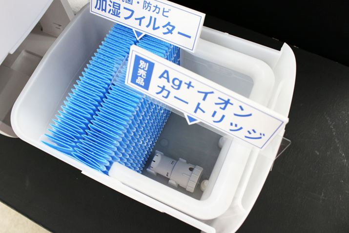 水の清潔性能を保つために、抗菌・防カビ加工が施された加湿フィルターを採用。また、別売のAg+イオンカートリッジ(FZ-AG01K1)を装着しておけば、ヌメリやニオイの原因となる菌の繁殖が抑制されます