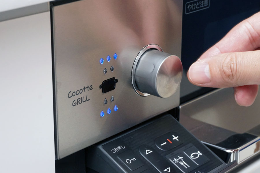 お料理で重要な火加減の調整。ガスコンロは安全対策として鍋底の温度を図るセンサーを搭載しているのですが、鍋底の温度=食材の温まり具合なので、実際の食材の焼け具合に応じて完璧な火力調整ができてしまうんです。ハンバーグ、餃子、茶碗蒸しなどといったメニューのレシピは標準で組み込まれていて、ハンバーグのひっくり返すタイミングも教えてくれるし、食材の焼き加減のお好み調整もできます。