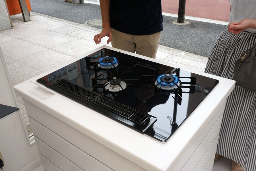 「リンナイHot.Lab浜松町」は本来は業者向けの研修施設ですが、コンロなどの商品展示をしている1階を見せてもらいました
