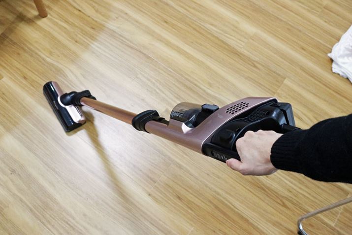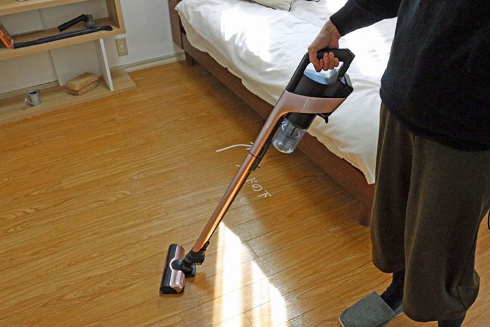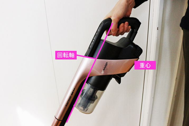 実際に方向転換しながら掃除機がけをしてみると、その差は歴然。距離を1cm短縮したり、重量を200g軽くするなど、数値の違いはわずかなものですが、体感は大きく異なります。よりムダな力が必要なくなり、それでいて機敏に動かせるので、腕への負担だけでなくストレスも少ない印象