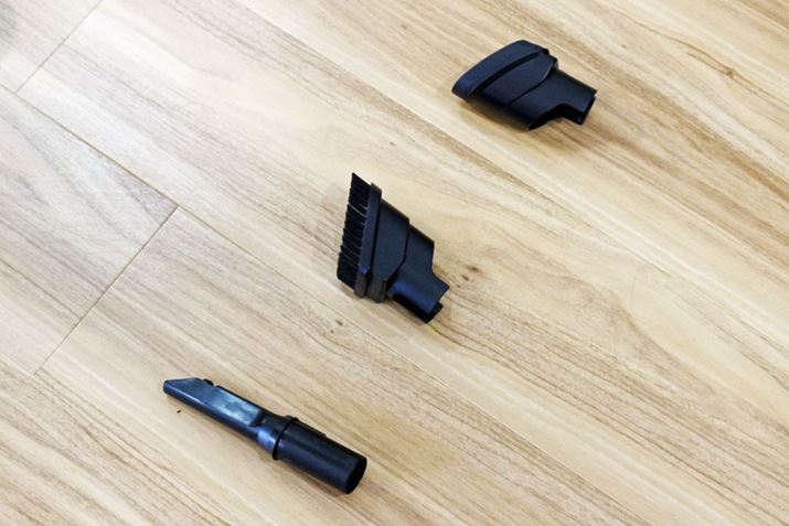 付属の付け替えパーツは「すき間ノズル」(左)、「スグトルブラシ」(中)、「ハンディノズル」(右)の3点