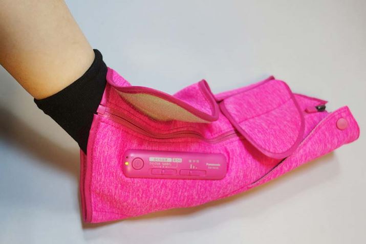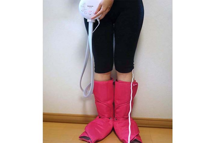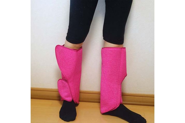 レッグリフレの基本モデルとも言える「ブーツ型」。ふくらはぎだけでなく、足裏までマッサージ。ただしコードが多い印象は否めません