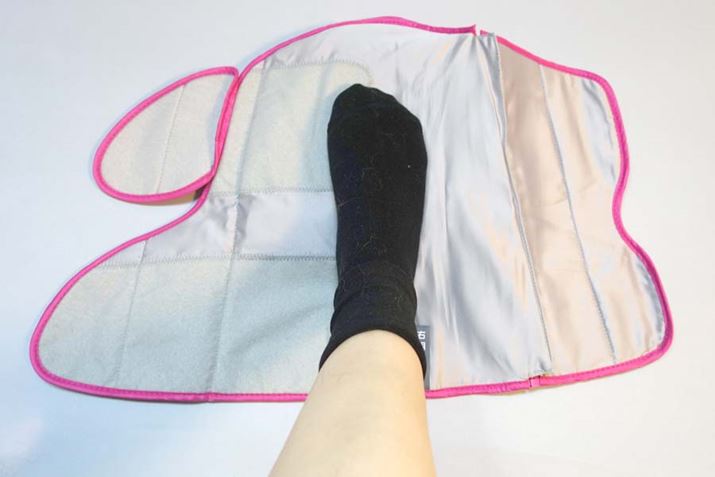 足裏用パッドはアタッチメント装着前に足裏部分にあるポケットにセット。突起の位置を自分が気持ちいい場所に合わせて使います