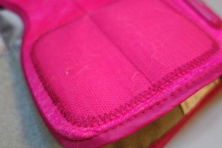 面ファスナーは起毛したパーツ同士がくっつく仕組みなので、ゴミがからまりやすいという問題点が。我が家で1週間使っただけで、白い犬の抜け毛やホコリのようなものがくっついてしまいました