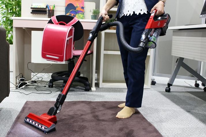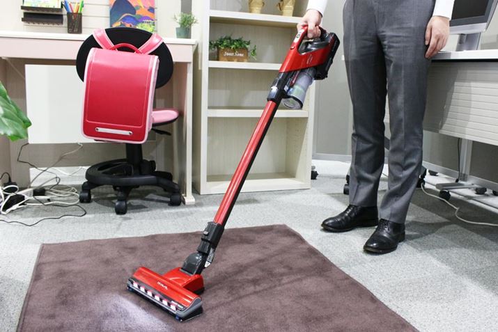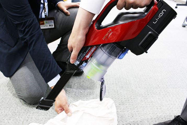 この写真の掃除機、ホースが付いているのでキャニスター型っぽいけれど、本体はスティック型っぽい……。実は、この掃除機はれっきとしたコードレススティック掃除機ですが、パイプと本体の間にホースを装着して掃除しているのです。こんな掃除スタイルができるのは、日立「パワーブーストサイクロン」だけ! 2018年9月22日に発売される新モデル「パワーブーストサイクロン PV-BFH900」をセミナーで見てきたので、その詳細をお伝えしましょう。