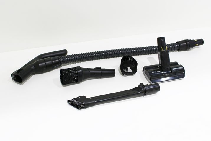 パイプやヘッドを外してアタッチメントを取り付け、いろいろなところの掃除ができるように、4種類のブラシとヘッドブラシ、「スマートホース」1本が付属しています