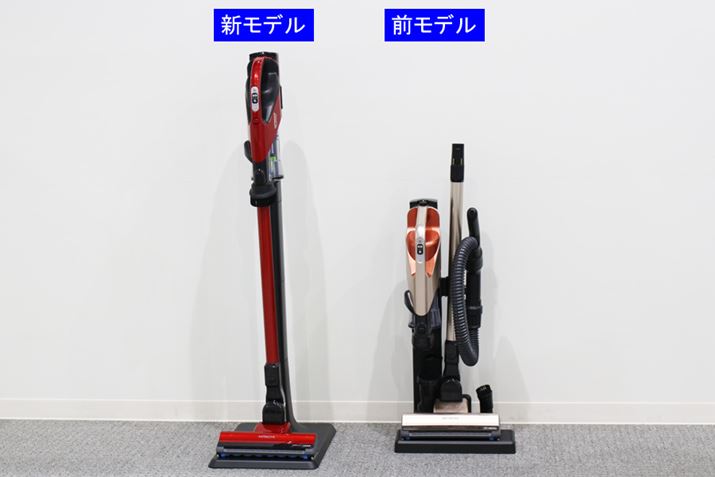 いざ掃除しようという時、前モデルは本体とパイプ+ヘッドを取り付ける手間が発生。いっぽう、新モデルはハンドルを持ってそのまま掃除に突入できます。なお、付属品はユーザーそれぞれで収納しなければなりませんが、素早く掃除できるほうがメリットは大きいでしょう