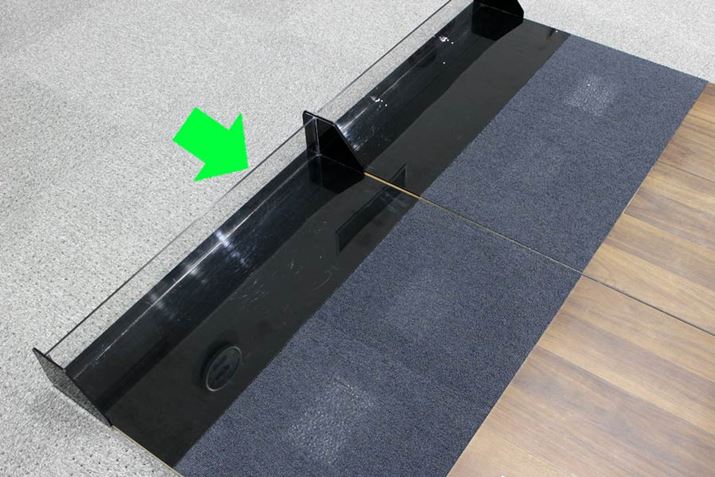 カーペットや壁際の掃除も、上の動画と同じように他メーカーのコードレススティック掃除機でも検証してみました。結果、PV-BFH900で掃除したところ(矢印の部分)がもっともゴミの取り残しが少ない! 奥の2か所は壁際の取り残しがかなり見受けられます