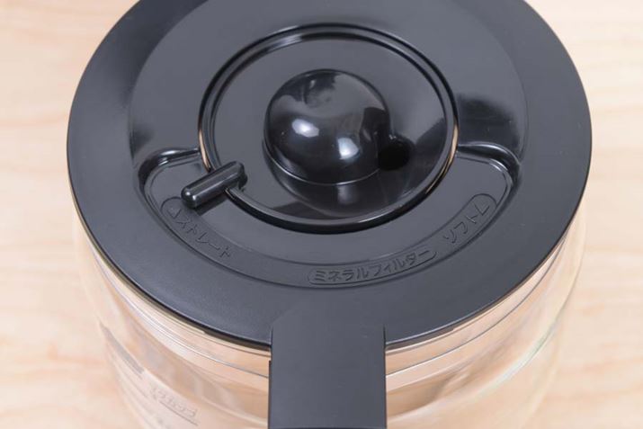 サーバーのフタには酸味調節レバーが付いており、「ソフト」に合わせると、抽出されたコーヒーがミネラルフィルターを通り、酸味を抑えられる