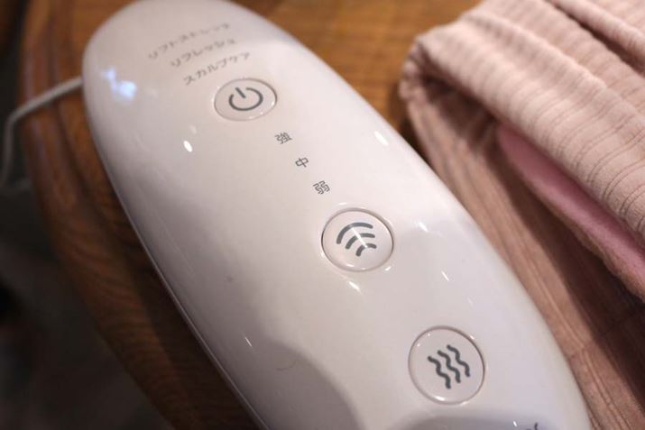 強さは3段階で調節可能。「リフトストレッチコース」を「弱」で使用してみたところ、「コレで弱!?」と驚くほどパワフルでかなり効きそう。眉のあたりをぐいぐい引き上げてくれました