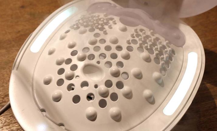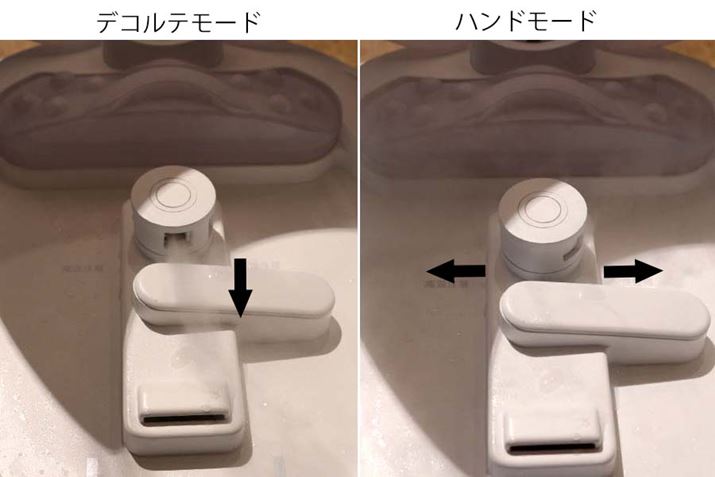 ハンドモードとデコルテモードの切り替えは、スチームの吹き出し方向を変えるだけ。写真ではわかりにくいですが、このサイズのわりにスチームがすごくたっぷり出ているなという印象でした
