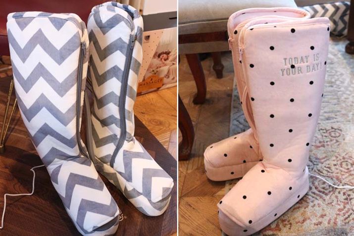 ルルド エアブーツマッサージャー AX-HXL206。カラーはピンク(左)とグレー(右)を用意。2018年10月10日発売予定で、価格は23,000円(税別)です