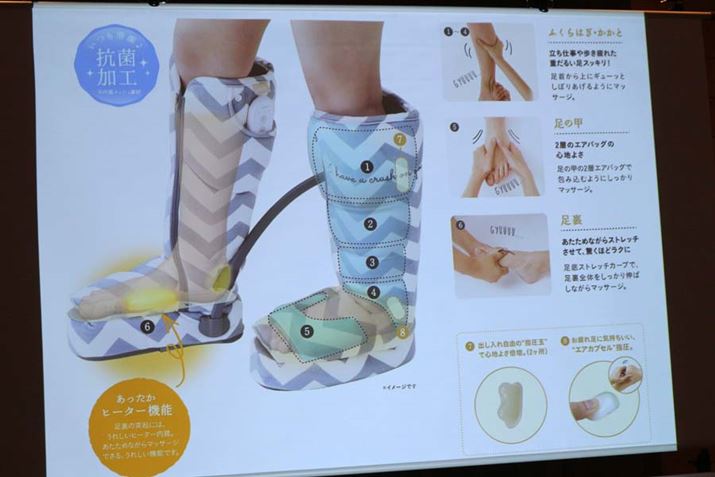 ふくらはぎ上部には「指圧玉」(取り外し、位置の調節可能)を、土踏まずには「エアカプセル」(取り外し不可)を内蔵。指圧されているような気持ちよさを味わえます