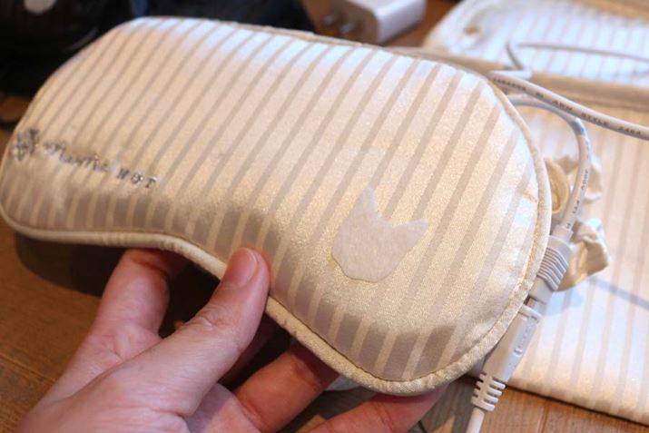 「ルルドめめホットチャージ プラス AX-KX512」。付属のねこ型のアロマシートを表面に貼り付け、そこに好みのアロマオイル(別売)を垂らせば、アロマテラピー効果も。2018年11月1日発売予定で、価格は5,500円(税別)です