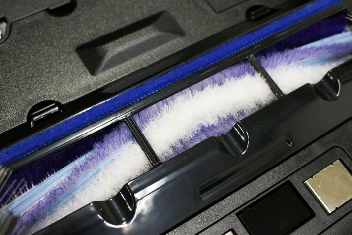 新モデルは、毛先がY字になったブラシ(白色の部分)が約3倍に増量。Y字ブラシは通常のブラシよりも床との接点が多く、ゴミをかき取りやすい特性があります。このブラシの量が増えたことで、床掃除の集じん性能が向上しました