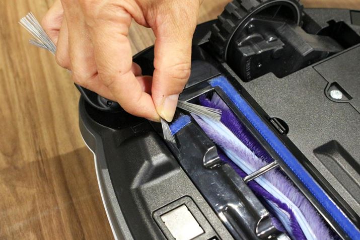 起毛布は拭き掃除効果のために装備されているものですが、従来のサイズではサイドブラシが引っかかり、せっかく集めたゴミが若干ではありますが吸引口に上手に誘導できていなかったのだそう。新モデルでは、スムーズにゴミをかき集められるように起毛布を5mmから20mmに大きくしたといいます