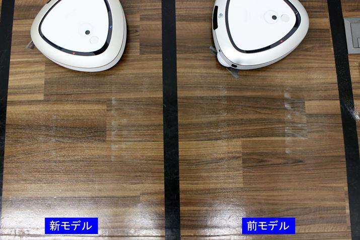 ブラシ量が増え、拭き掃除効果のある起毛布の面積も大きくなったおかげか、明らかに新モデルのほうがゴミの取り残しは少ない!