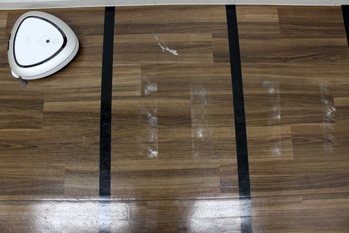 左端のレーンがルーロ、中央、右端は他メーカーのロボット掃除機で掃除した状態。やらせと思われるのではないかというくらいルーロの掃除後がキレイですが、この結果はガチ! こんなに差が出るのかと、正直驚きました