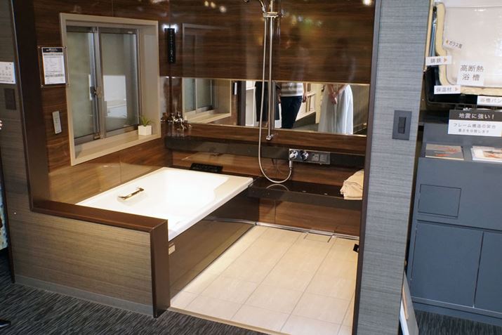 キッチン編でも登場したタカラスタンダードはホーロー(琺瑯)素材が自慢。システムキッチンだけでなく、システムバスも有名です。理由は浴室の壁全体がホーロー素材なのでキレイが続く“ホーロークリーンパネル”。震度6強相当に耐える耐震システムバスという頑丈さも備えています。